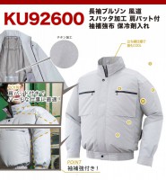 トップ > 空調作業服 > 空調作業服(ポリエステル100%) > 送料無料 空調服風神 サンエス KU92600 チタン加工風気路長袖ブルゾン空調服(レギュラーファン・バッテリーセット付き RD9810R/RD9820R・RD9870J)作業服