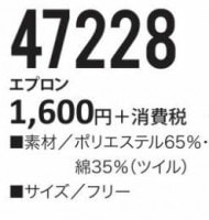 【送料無料】【1000円ポッキリ】男女兼用カラーエプロンクロダルマ47228作業着・作業服【1枚までメール便/代引き/コンビニ支払い不可】